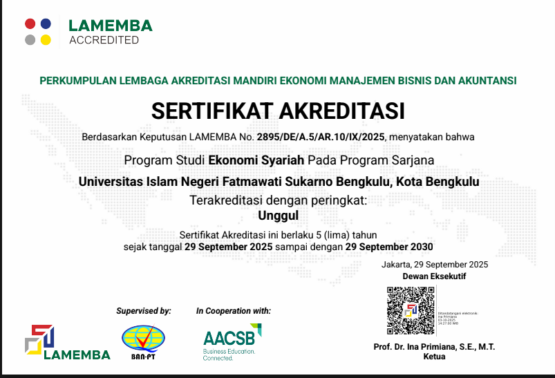 - Meningkatnya kualitas tata kelola sistem penjaminan mutu internal di Fakultas Ekonomi dan Bisnis Islam UIN Fatmawati Sukarno Bengkulu.
