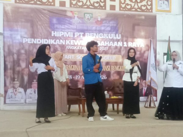 Sabtu, (18/04/26) Fakultas Ekonomi dan Bisnis Islam UIN FAS Bengkulu bekerja sama dengan HIPMI Perguruan Tinggi Bengkulu, mengadakan kegiatan pendidikan kewirausahaan di Gedung Serba Guna Pemerintah Provinsi Bengkulu. Kegiatan ini dibuka oleh Kepala Dinas Koperasi dan UMKM Pemprop. Bengkulu.